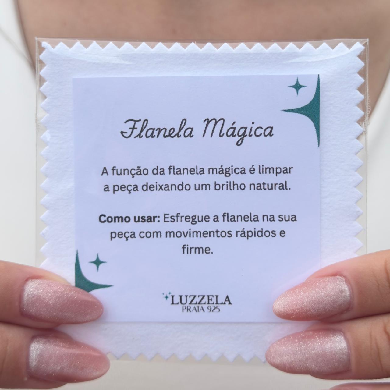 Todos os nossos pedidos acompanham flanela mágica. Para manter o brilho da sua joia por mais tempo, utilize a flanelinha regularmente e evite o contato com produtos químicos.